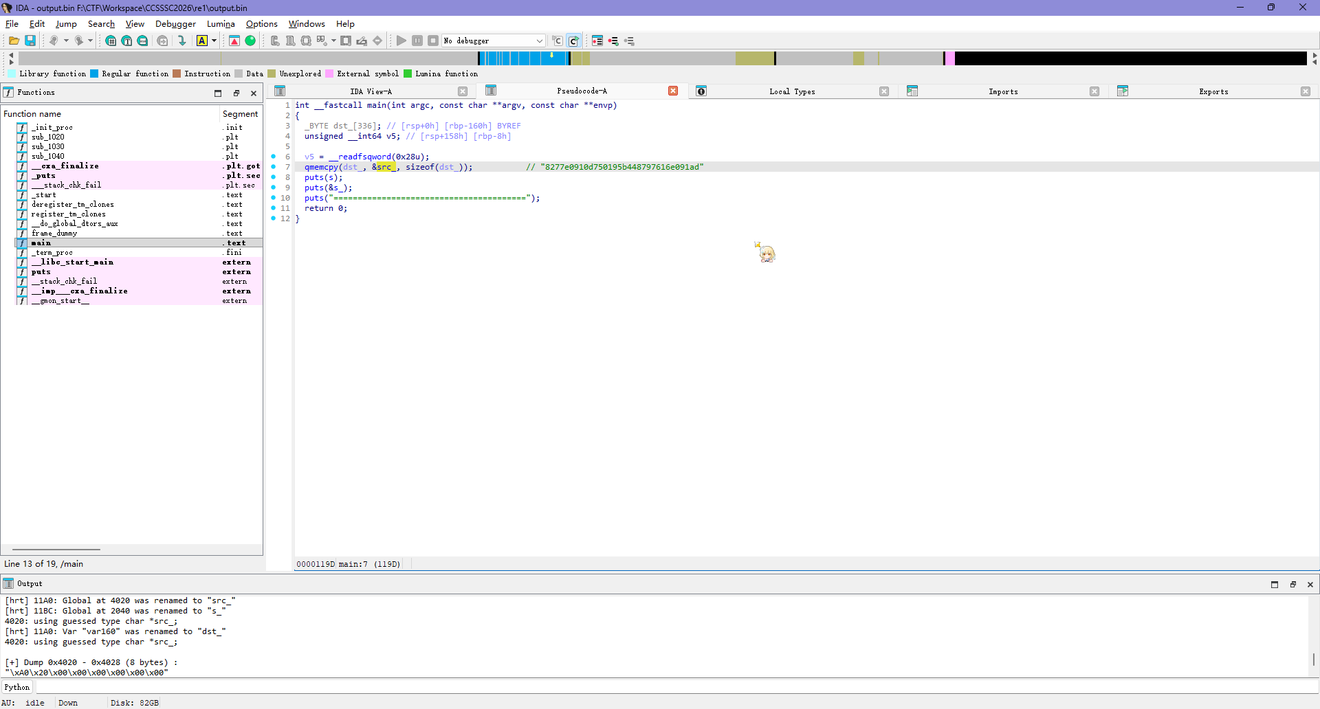 恢复得到 output.bin,用 file 查看发现是 ELF