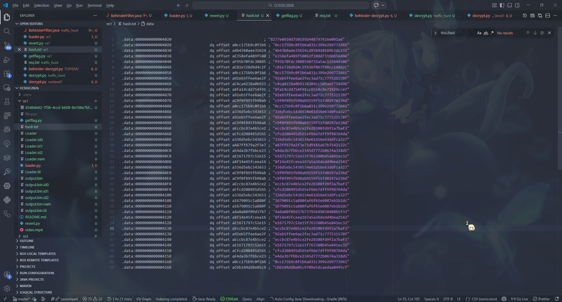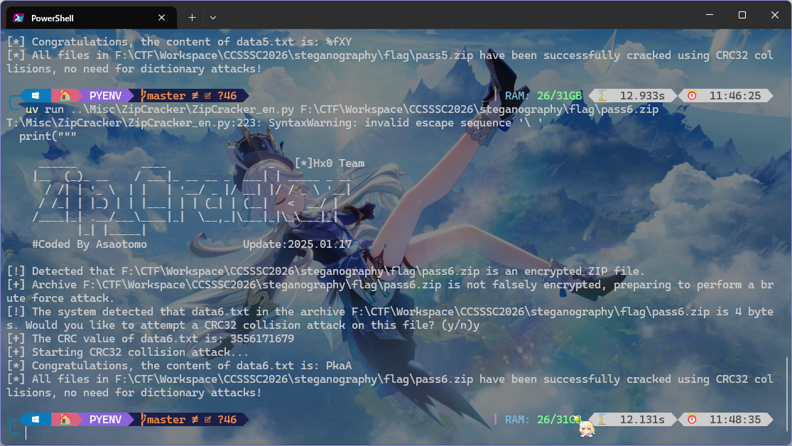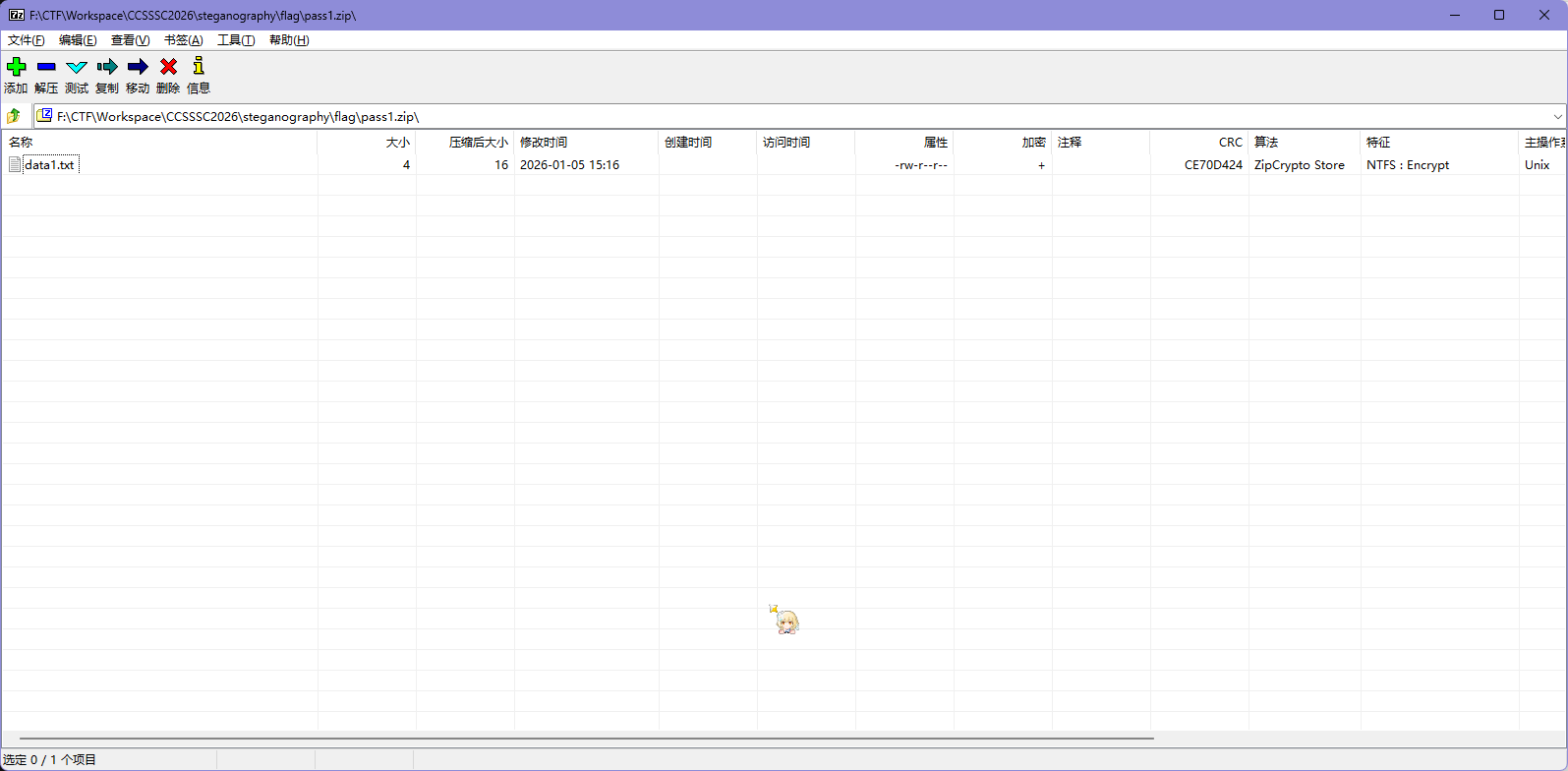 发现这几个 zip 都有加密,但是 data* 里面的 txt 文件大小都是 4Bytes,可以尝试 CRC 攻击