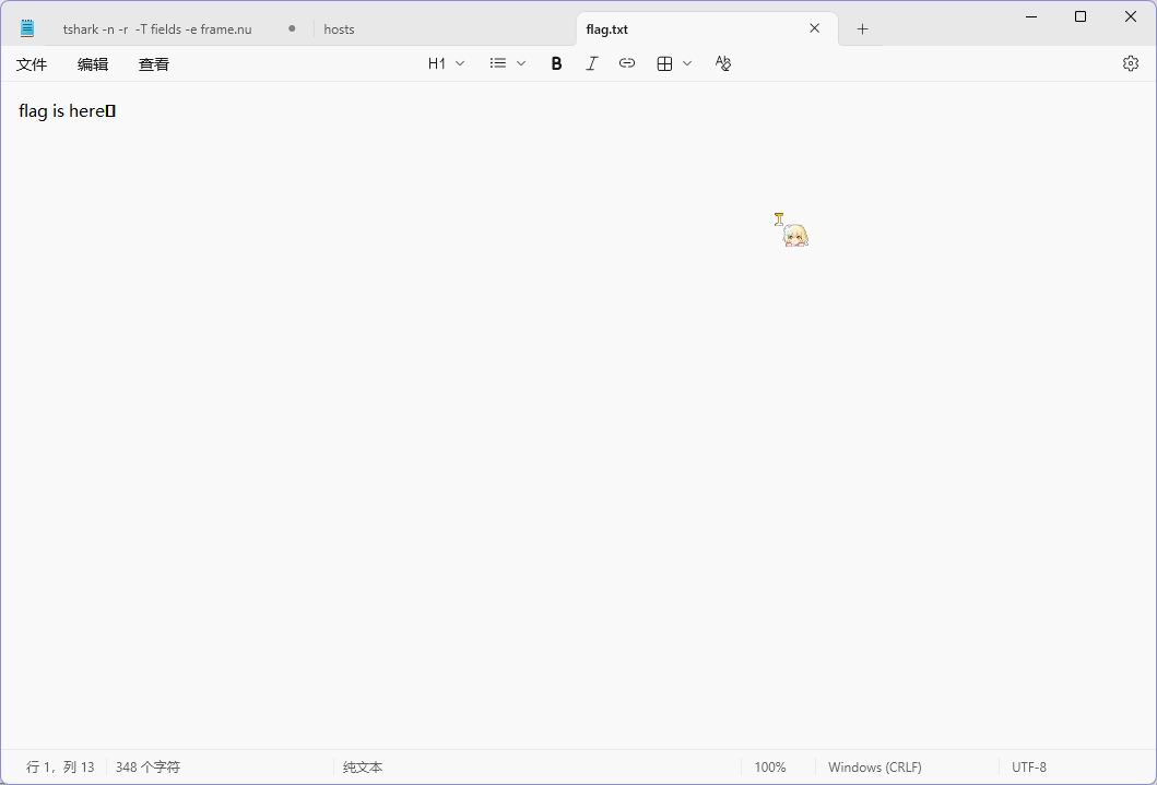 将所有内容组合起来为 pass is c1!xxtLf%fXYPkaA,拿着密码去解压 flag.zip 成功,得到 flag.txt 文件