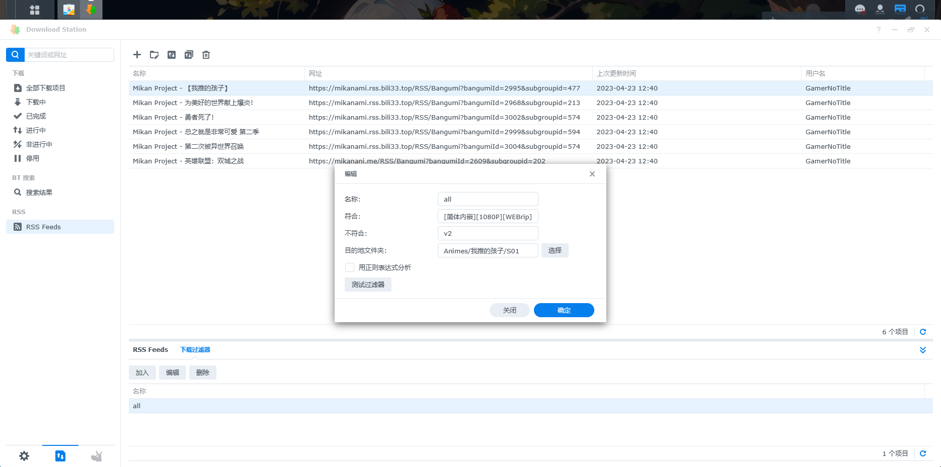 设置完后,记得在RSS Feeds里面,把之前已经发出来的剧集先根据自己的需要下载好