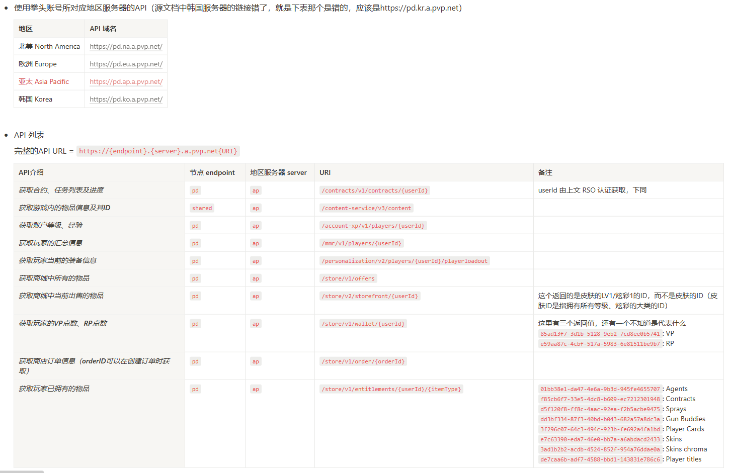 附上可用于参考的文档(在别人的文档上改的,我的文档里附了源文档链接):https://gamernotitle.notion.site/Valorant-API-baffa2069fb848a781664432564e94d0