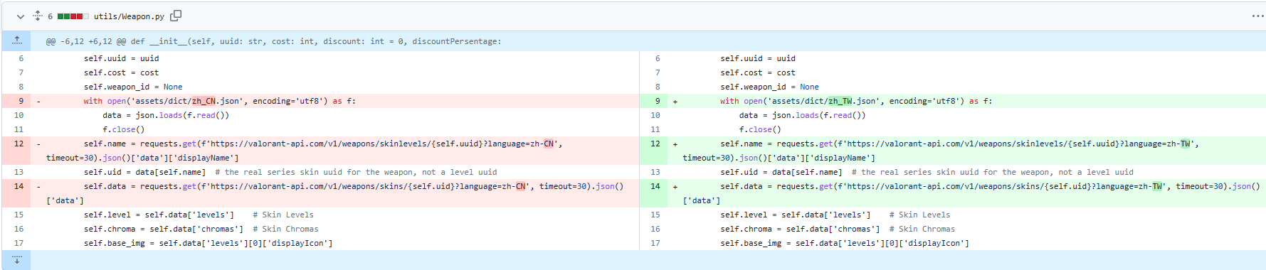 通过自己做的这个缓存作为索引,去Valorant-API网站上调用到这个皮肤的所有信息,然后进行解析,得到这个皮肤的所有等级和炫彩数据,构成一个对象(下面代码是最初版本,该版本文件)