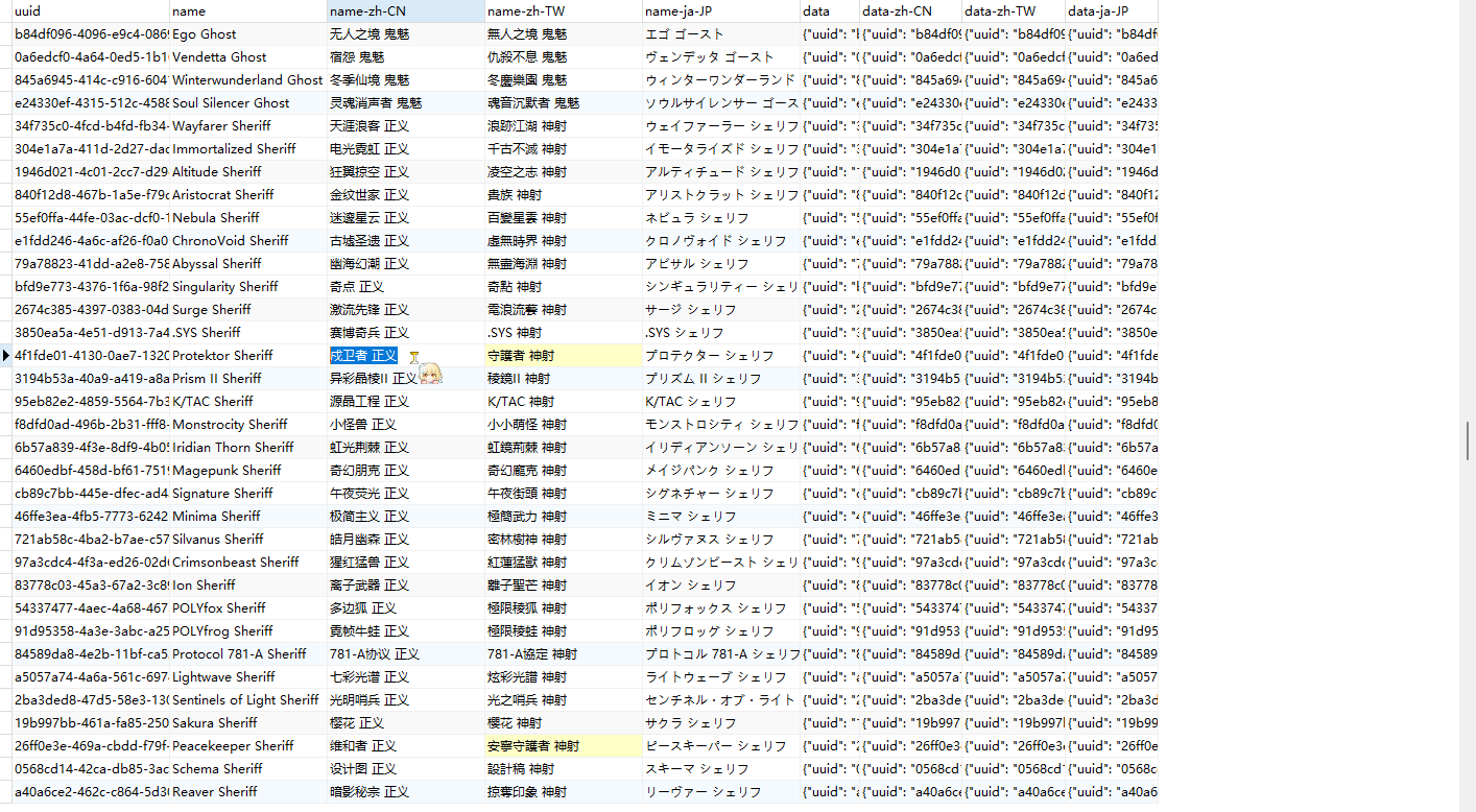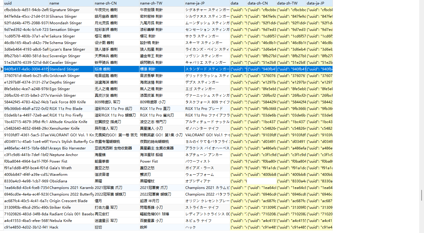 然后我就直接访问https://valorant-api.com/v1/weapons/skins,把里面的所有内容扒了下来,做了一个缓存,里面写了所有皮肤名字对应的皮肤UUID(见这里)