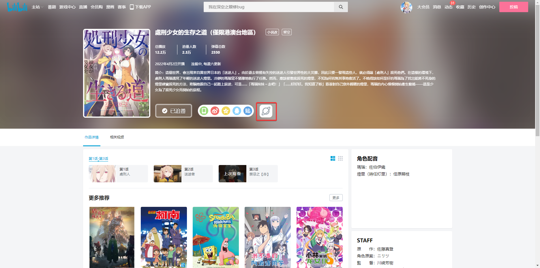 然后当你打开某一个番剧的详情页(不一定要港澳台的),有一个设置按钮(就是图片里面这个有点像星球的这个按钮)